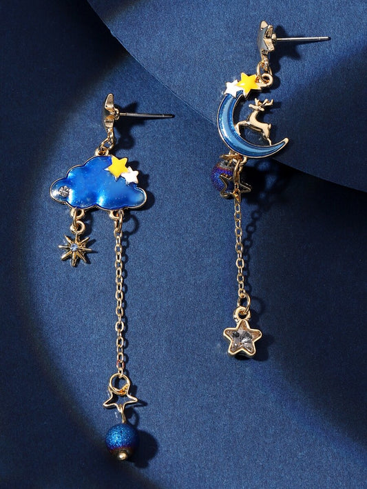 Cloud & Moon Mismatched Drop Earrings