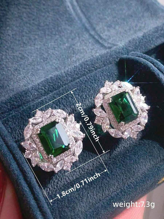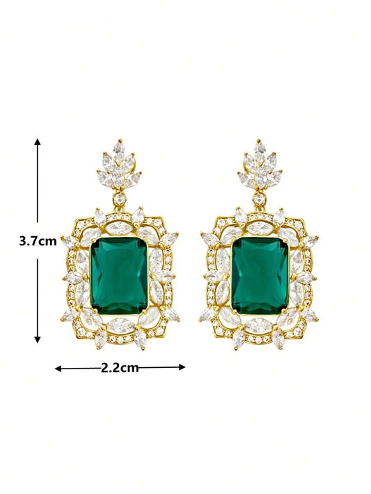 1pair Glamorous Green Cubic Zirconia; Rhinestone Decor Drop Earrings For Women For Wedding Party Jewelry Valentine's Day Gift,Mom,Mother,Mother's Day,Gift