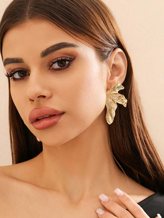 Vintage Golden Large Leaf Design Stud Earrings, Suitable For Women's Daily Wear