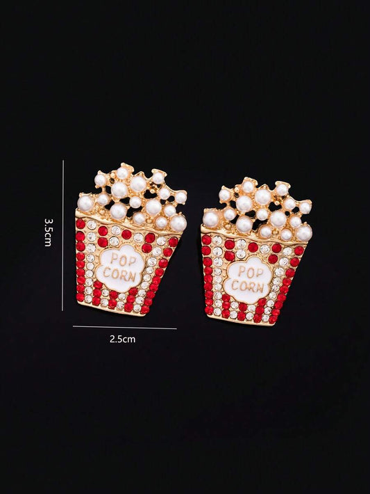 1 Pair Exaggerated Rhinestone & Faux Pearl Popcorn Design Stud Earrings, Suitable For Dates, Shopping, Parties