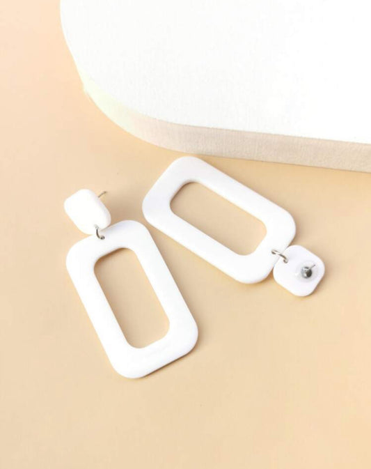 White Geometric Drop Earring