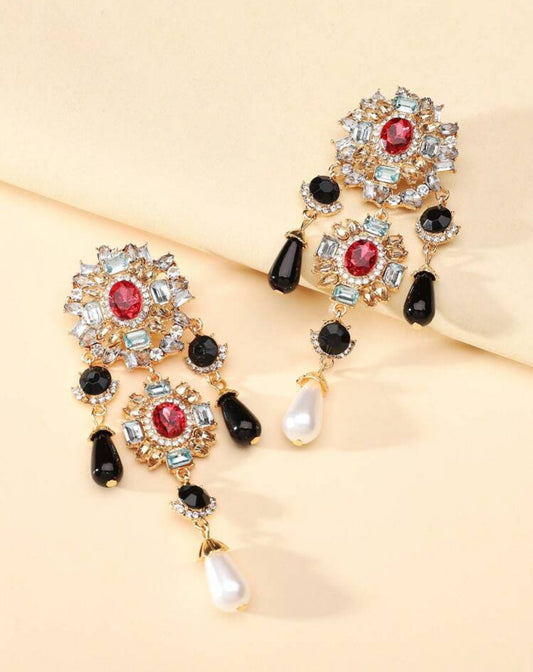 Vintage Gorgeous Rhinestone Faux Pearl Chandelier Earrings For Women Elegant Exquisite Jewelry