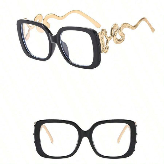 Unisex Square Big Frame Vintage Non-Prescription Glasses Glasses, Personalized Snake Leg Decoration Design