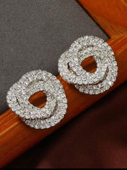 Wrapped Design Fully Rhinestoned Studded Earrings