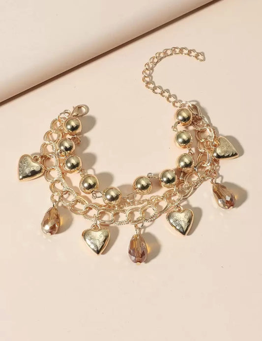 Gold Color Heart Charm Bracelets For Women Teen Girls Stainless Steel Couple Love Friendship Bracelets Daily Party Jewelry Gifts Valentines