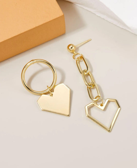 Heart Mismatched Golden Earrings