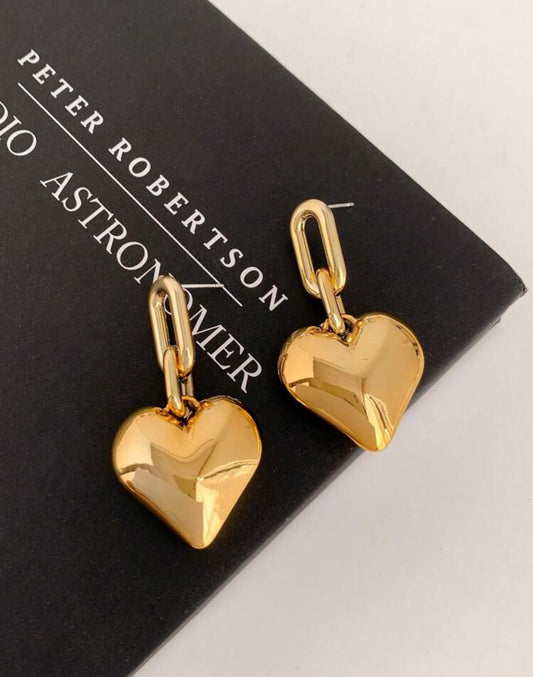 Dangling Gold Heart-Shaped Earrings Simple & Fashionable