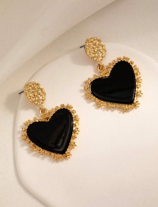 Geometric Embossed Heart Resin Embellished Earrings