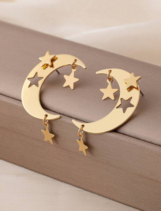 2pcs/Set Star Moon Alloy Hollow Crescent Pendant Five Star Women's Earrings