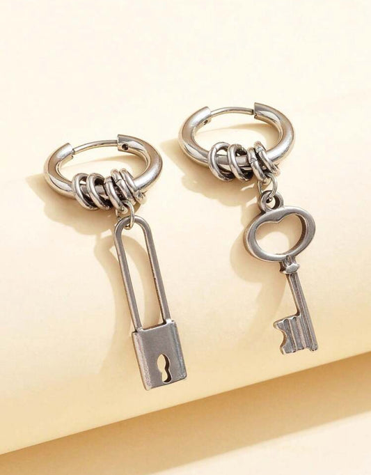 Punk Style Retro Simple Asymmetric Lock & Key Earrings
