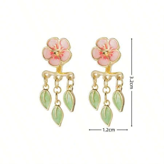 1pair Fashionable Enamel Colorful Flower & Leaf Earring Jacket For Women, Unique Design, Suitable For Gifting On Holidays, Birthdays And Everyday Wear