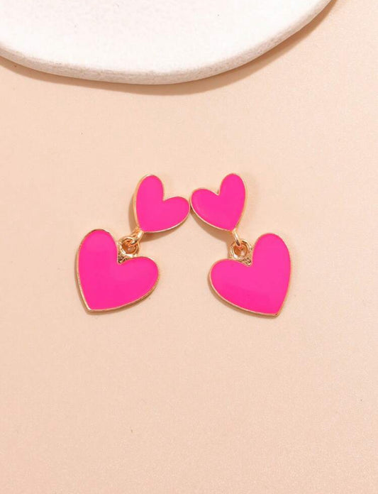 Hot Pink Heart Drop Earrings