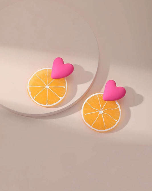 Heart & Lemon Slice Drop Earrings