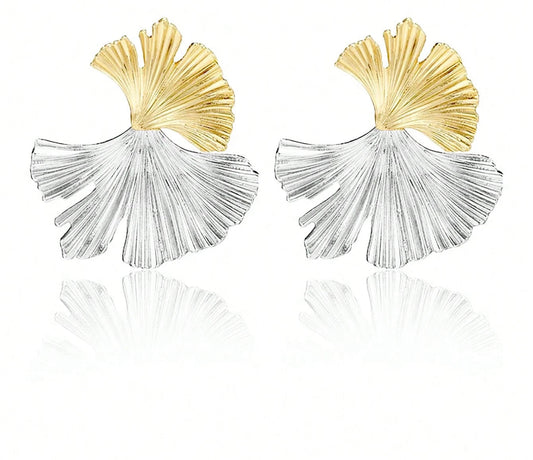 Ginkgo Leaf Earrings With Korean Style Design, Double Leaf Metal Earrings