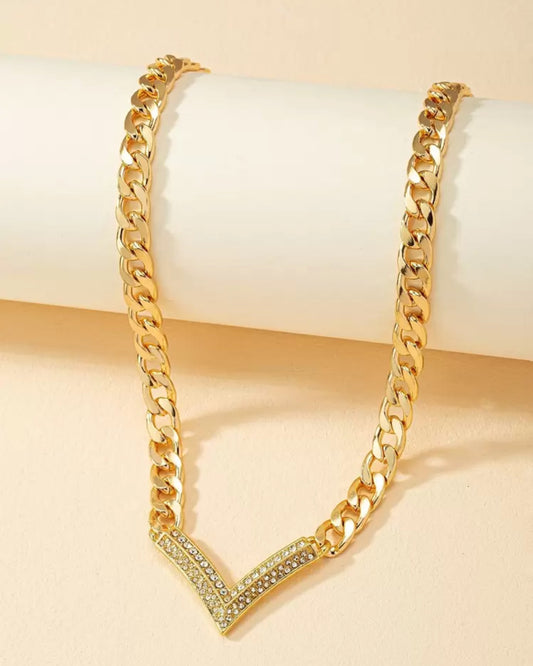 Rhinestone Inlaid Letter Detail Chunky Chain Necklace