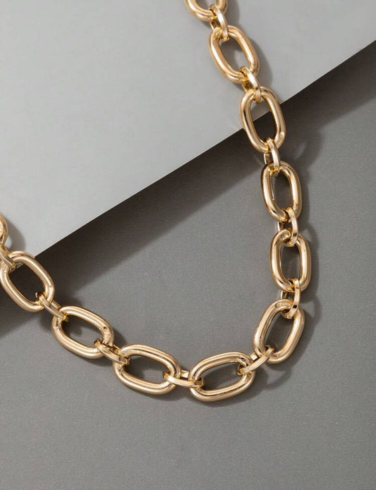 Asymmetrical Chain Necklace, Chunky Oversized Collar Lock Chain, Gold Color
