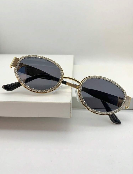 Oval Frame Rhinestone Decorated Fashion Glasses
