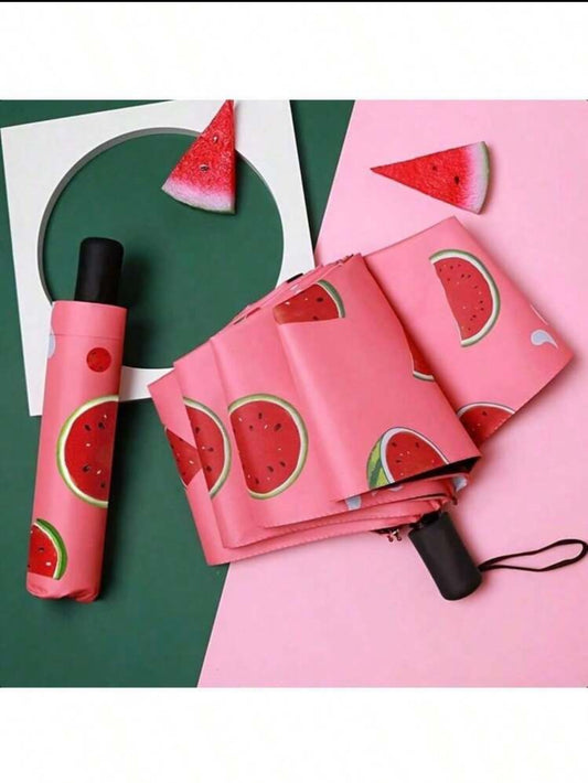 Fully Automatic One-Touch Open Watermelon Print Umbrella, 8K Sun Blocking Anti-UV Parasol, Cute Compact Folding Rainproof Umbrella, Suitable For Travel, Wedding Photography, Gift, Water Repellent