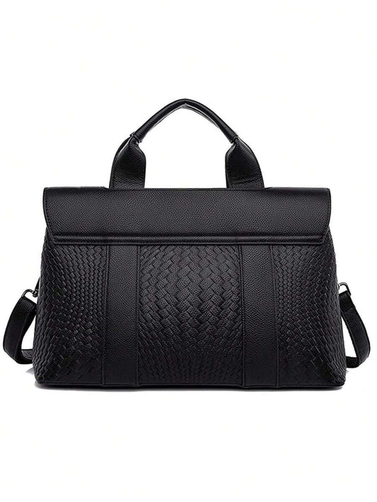 Pre Order black woven embossed Boston ladies' handbag with soft leather and a large capacity for commuting