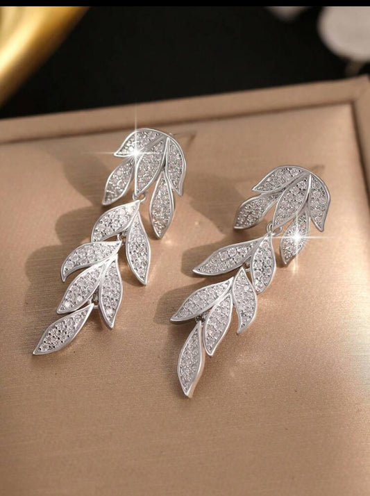 Elegant Cubic Zirconia Leaf Dangle Earrings For Women Wedding Dresses Ladies Jewelry For Daily Decoration, Banquet, Prom, Party Jewelry