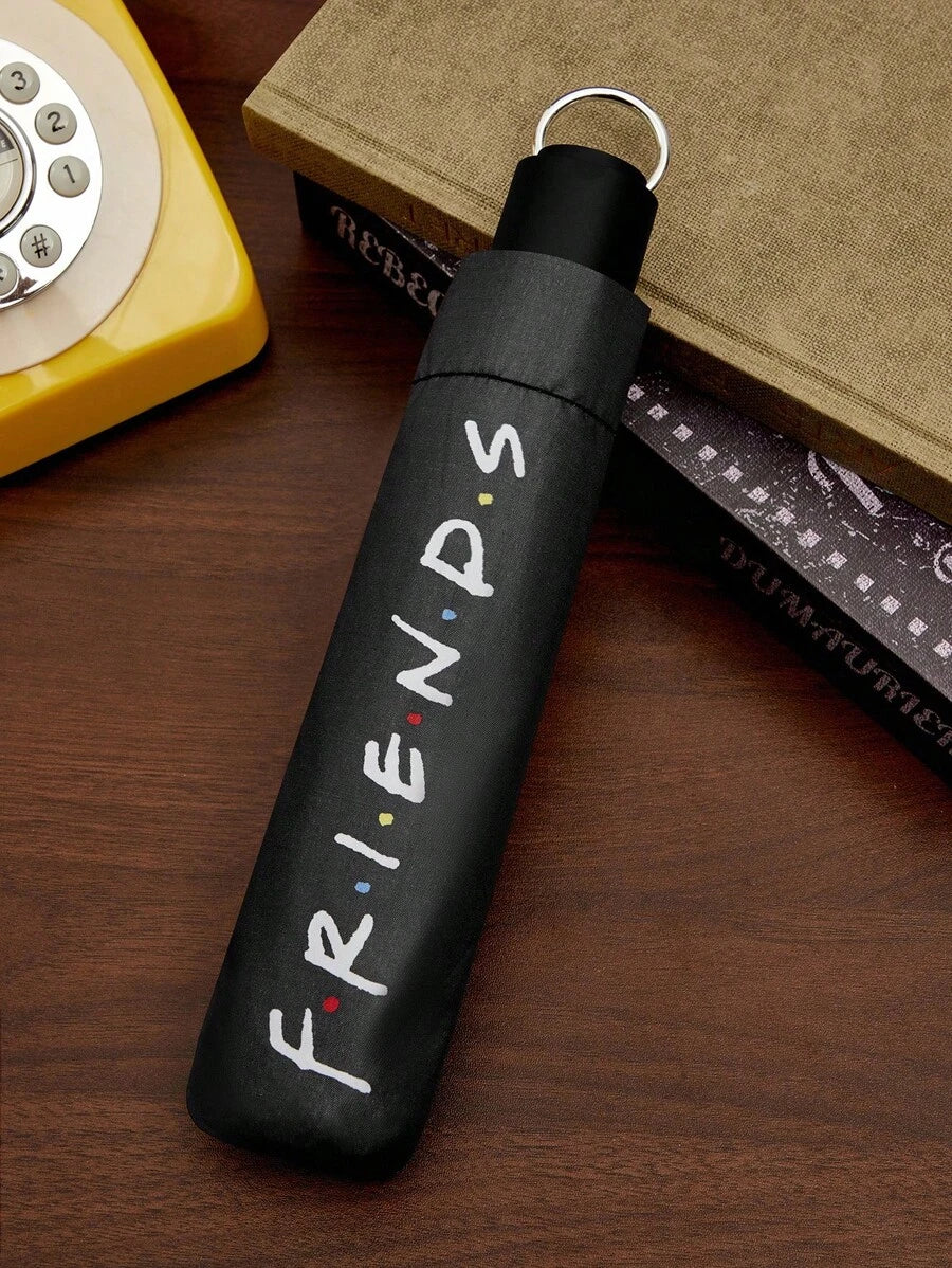 FRIENDS 1pc Coffee Cup Pattern Printed Four-Fold Umbrella, Featuring Sun Protection Function, With A Raised Umbrella Bone For Comfortable Use, Suitable For School, Work, Outings, And Daily Use