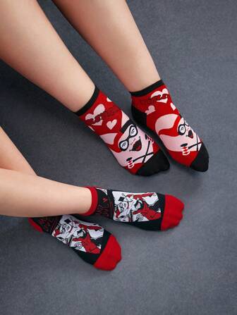 Harley Quinn Cartoon & Letter Patterned Short Socks