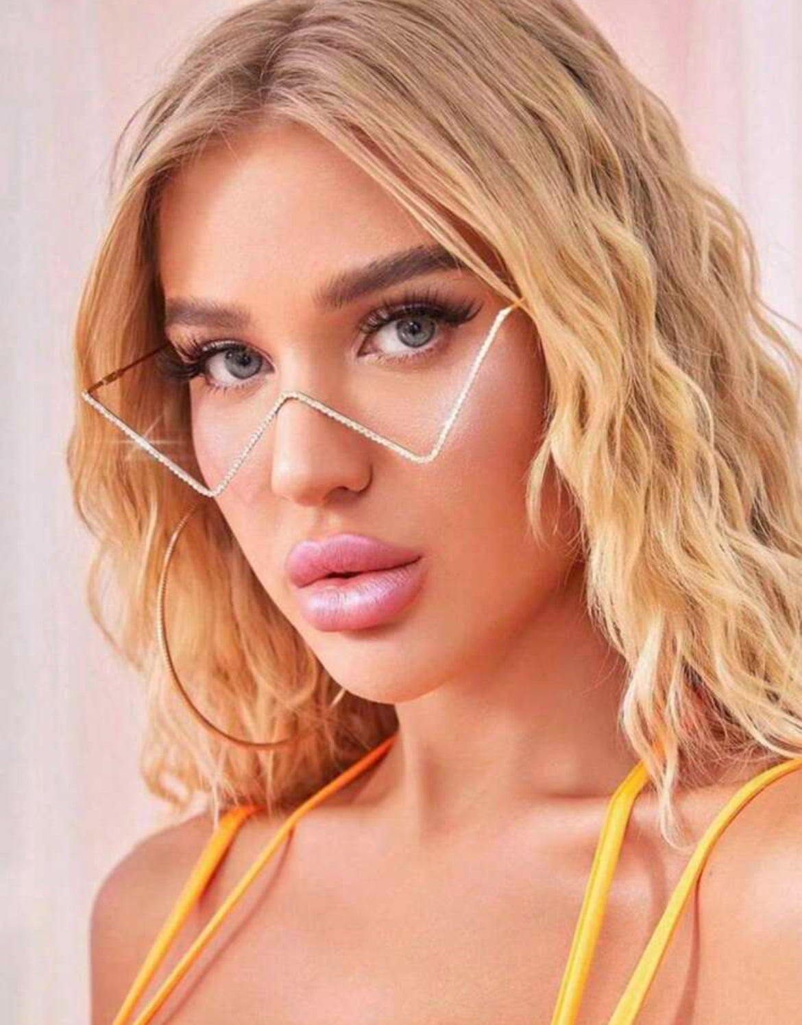 Metal Frame Decorative Hollow Shape, Rhinestone Inlay Shiny Eyeglasses Without Lens