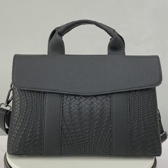 Pre Order black woven embossed Boston ladies' handbag with soft leather and a large capacity for commuting