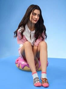 TOM & JERRY X SHEIN 2pairs Cartoon Graphic Ankle Socks
