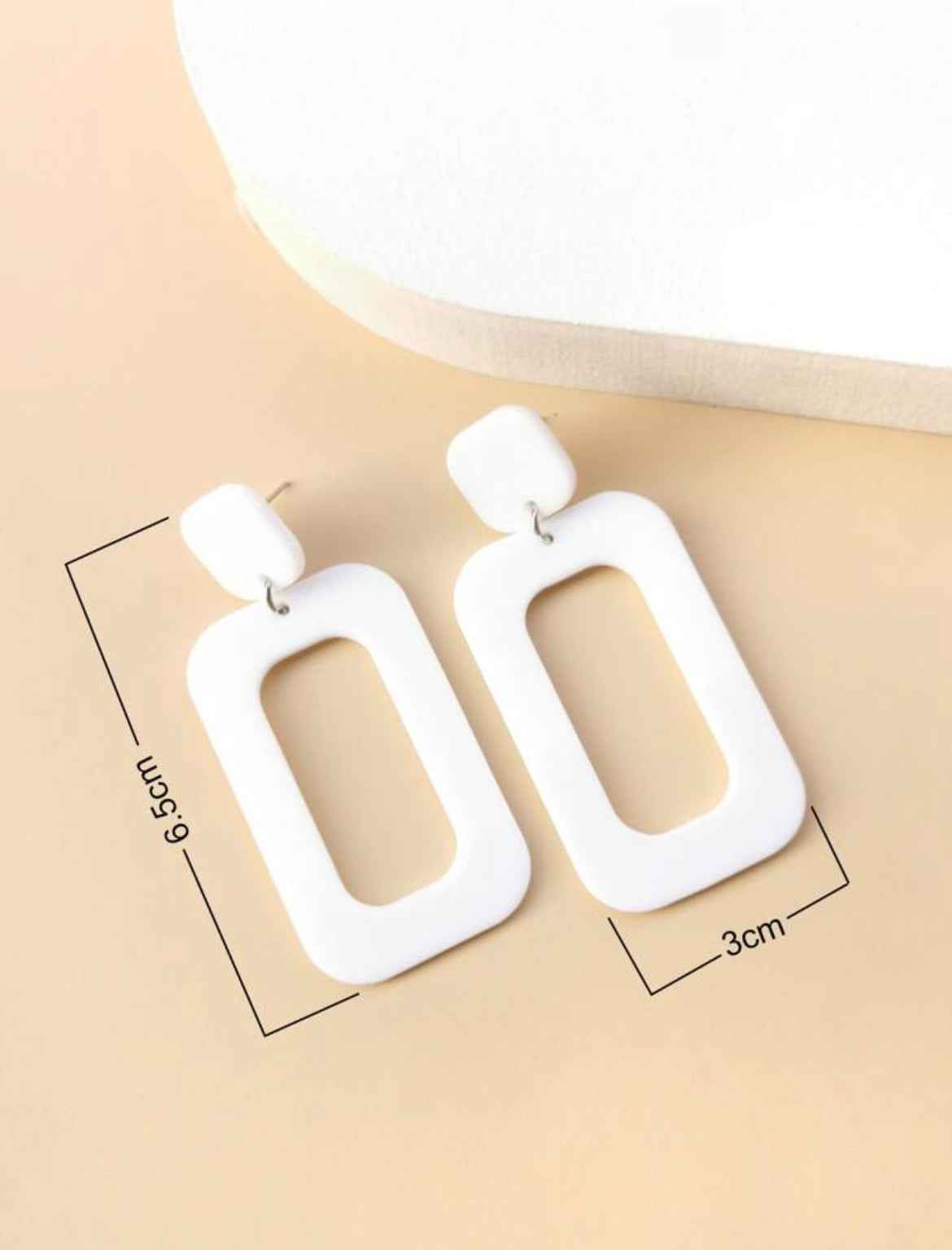 White Geometric Drop Earring